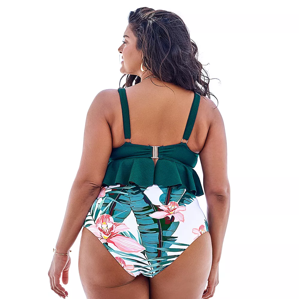 A ruffle-hem bikini top and high-waist bottoms make this women’s CUPSHE bikini set a chic choice for pool or beach.