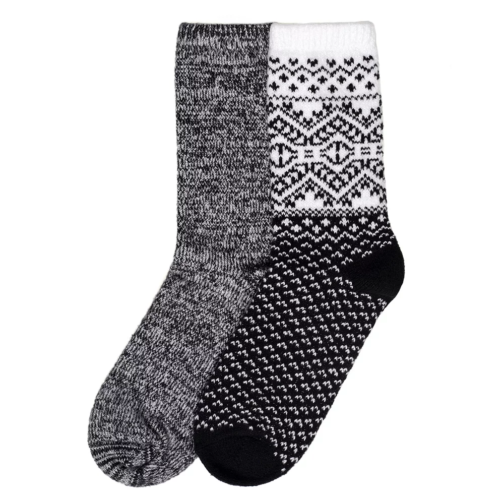 Slip into style with these Women’s Cuddl Duds 2 Pair Pack Boarder Diamond with Fairisle Spacedye Crew Socks.