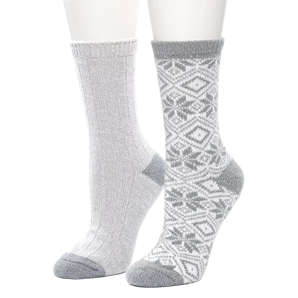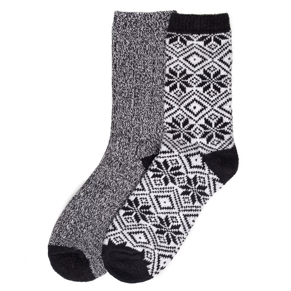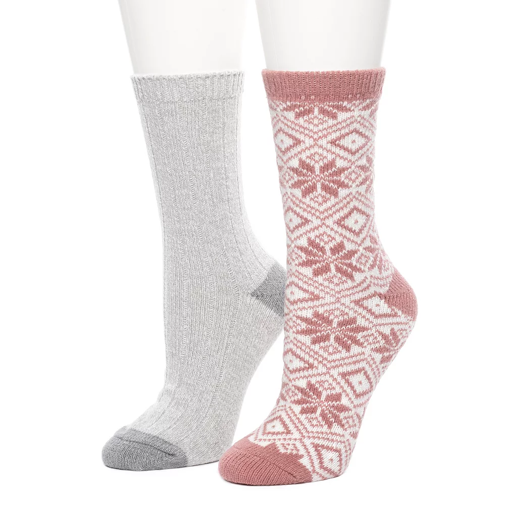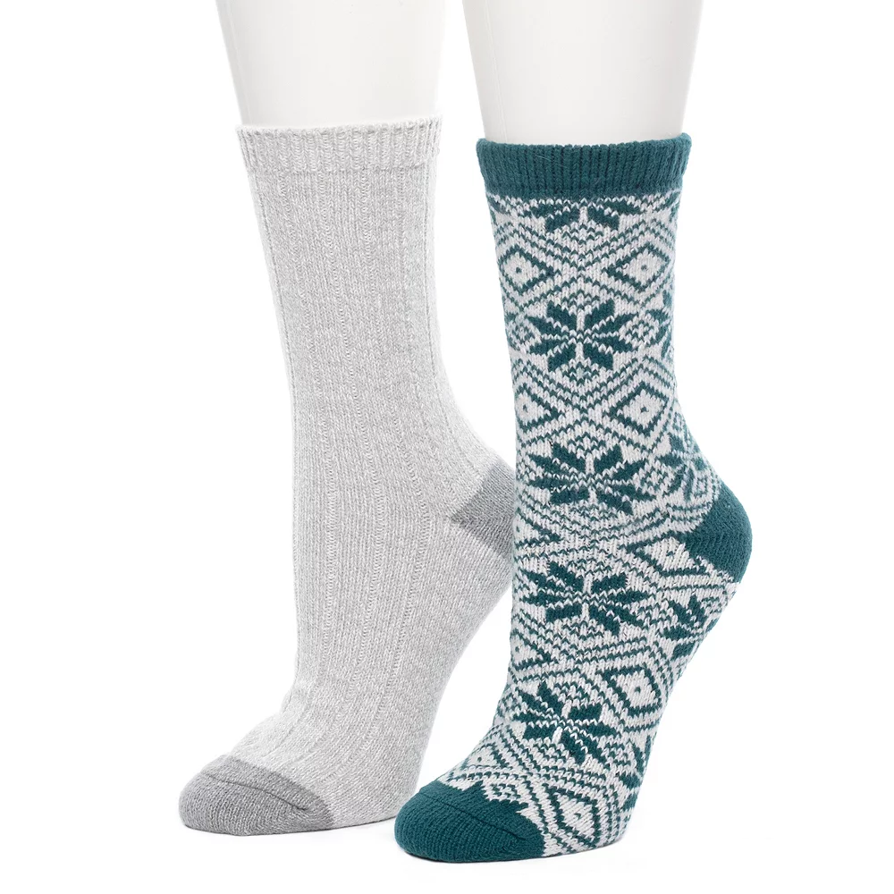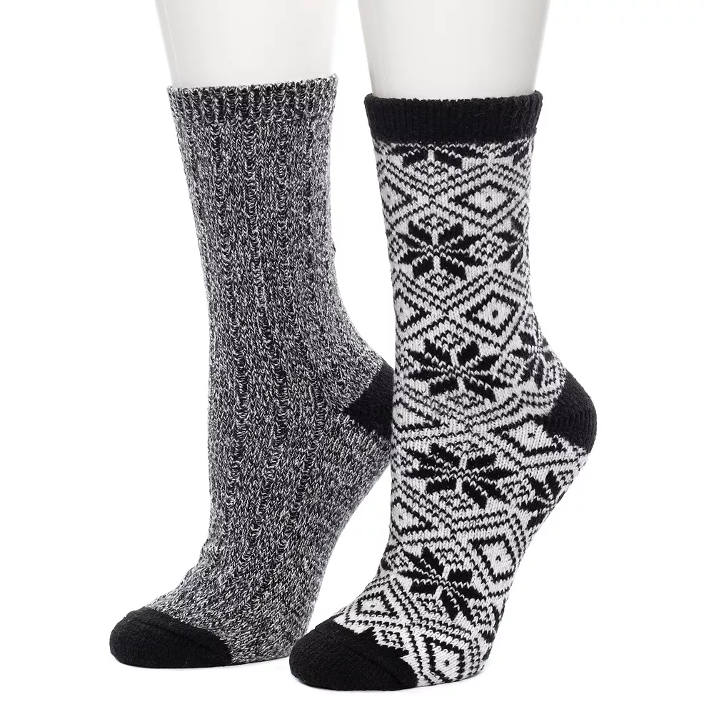 These Women’s Cuddl Duds 2 Pair Pack Snowflake Diamond Crew Socks are fun, stylish, and comfortable as can be.