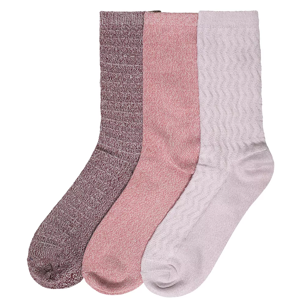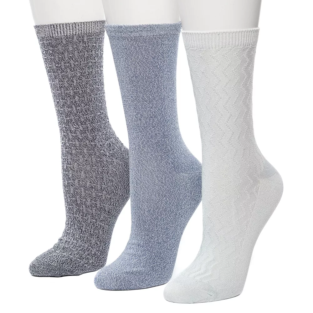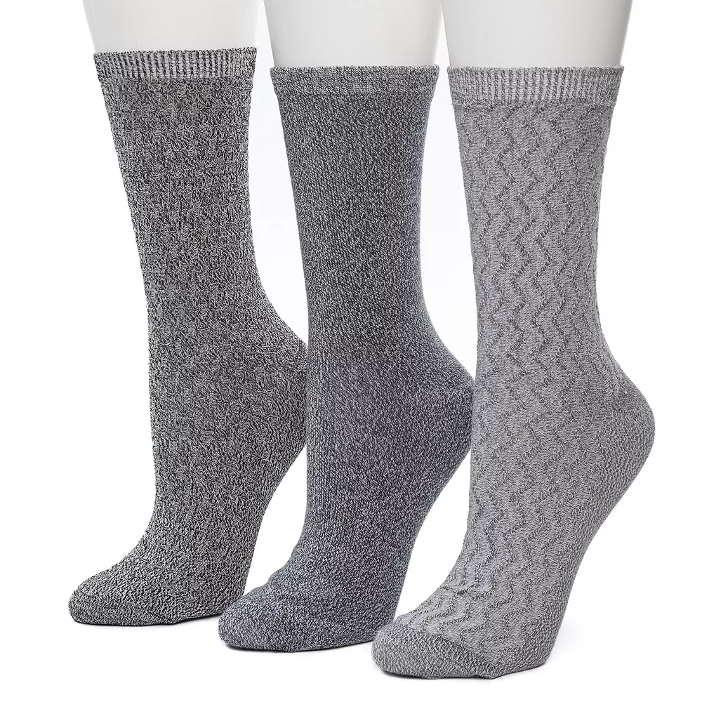 These Women’s Cuddl Duds 3 Pair Pack Zig Zag Twist Textured Mid Weight Crew Socks are stylish, comfortable, and perfect for any occasion.
