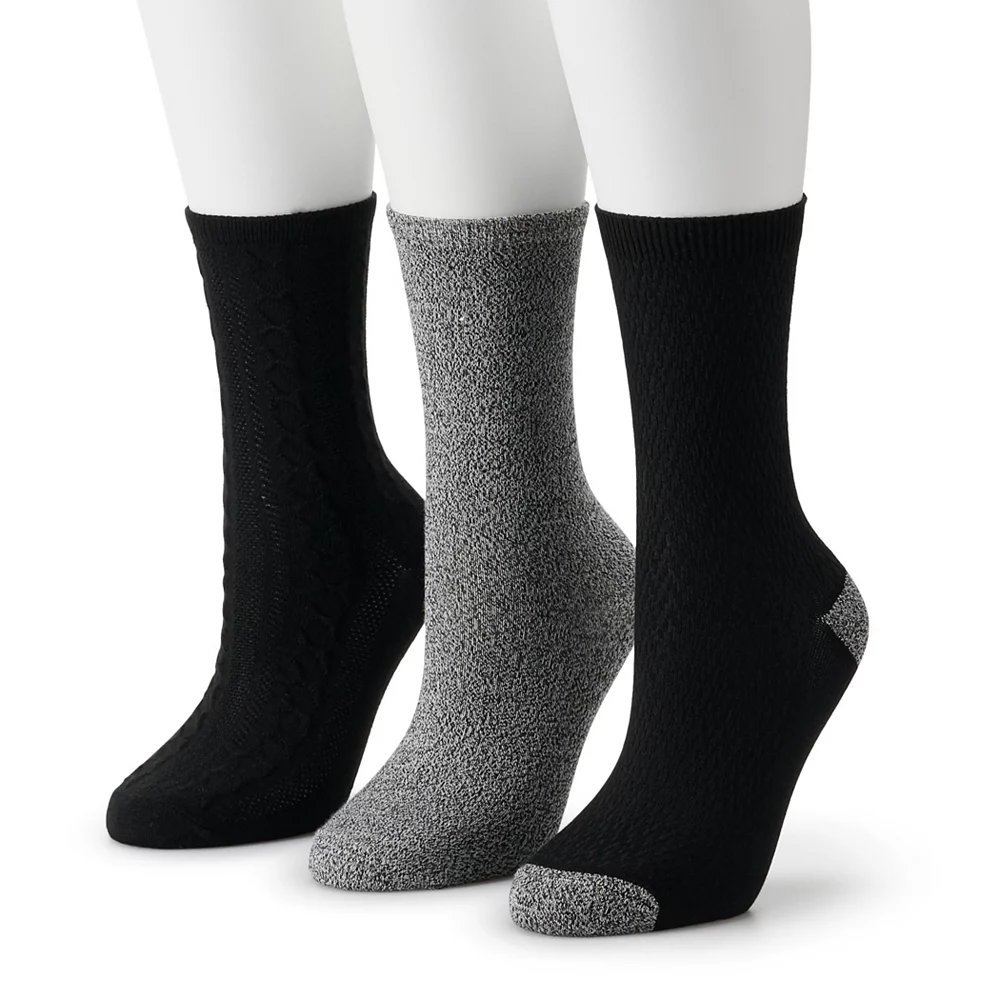 You’ll love the fit and feel of these classic women’s Cuddl Duds crew socks.