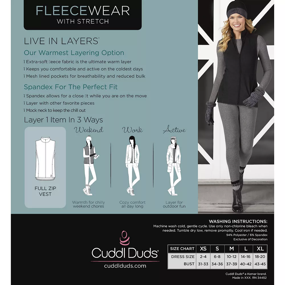 This women’s Cuddl Duds Fleecewear with Stretch zippered vest is the ultimate warm layer, designed for cozy comfort on the coldest days.